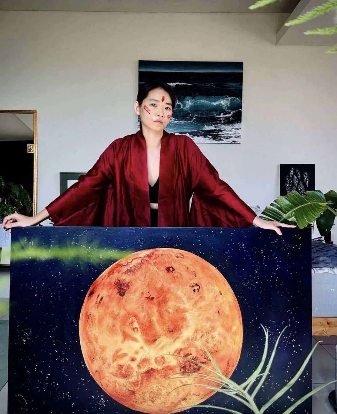 Tricia is a Taiwanese interdisciplinary artist whose practice spans painting, mixed media, dance, and somatic healing through art. Her community workshops integrate art, movement, and spiritual practice, creating space for authentic being rather than instruction - an approach inspired by indigenous traditions that honor inner wisdom. She has studied, in particular, Kali embodiment and dance, which she has integrated into her performance art. In addition to being an artist, Tricia is also an educator to Taiwanese children. Her embodied Kali energy extends to the young lives of those she works with by being a fierce protector and loving, maternal force. Tricia carries Atayal blood in her lineage. Her period blood art not only allowed her to reclaim the divine feminine energy within her but also to honor every woman in her bloodline. She is here to guide others safely and reverently into their own power, courage, and liberation.